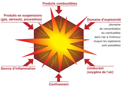 Si nous nous trouvons dans un environnement de gaz ou de poussières, différents facteurs peuvent entrainer un danger d’explosion : la dispersibilité, la granulométrie, la température d’auto-inflammation, l’énergie minimale d’inflammation…